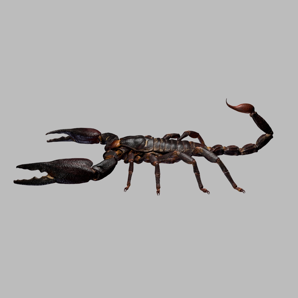 Black scorpion with UVs, textures and normal mapping. Rig setup by RIG-IT.net.