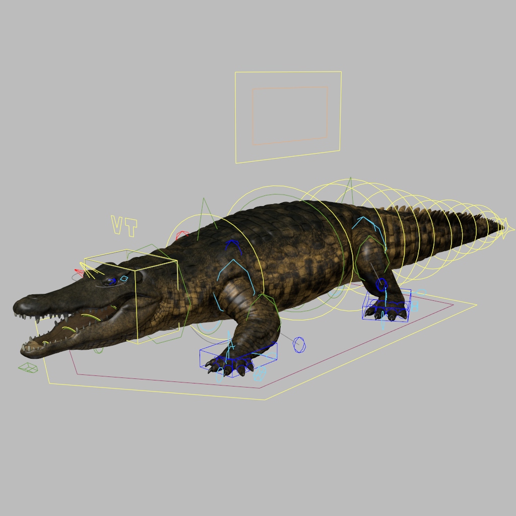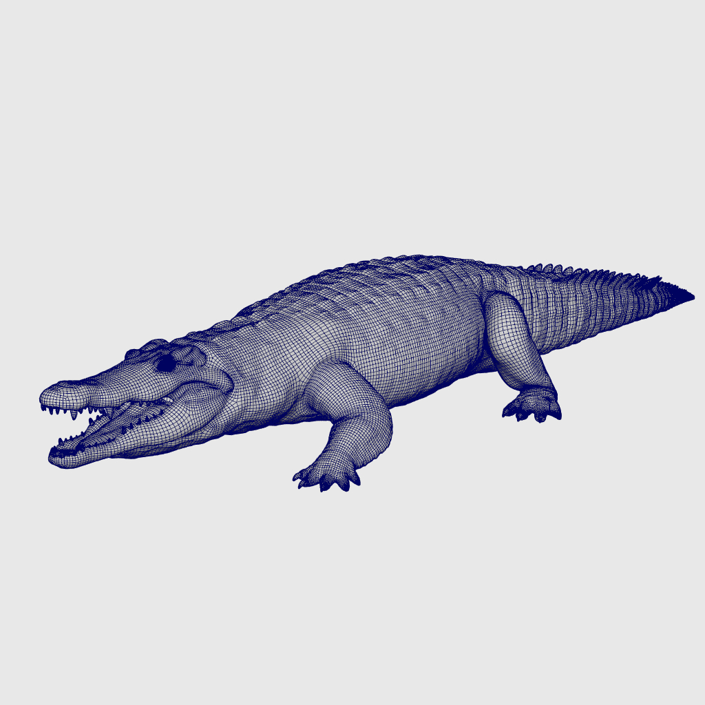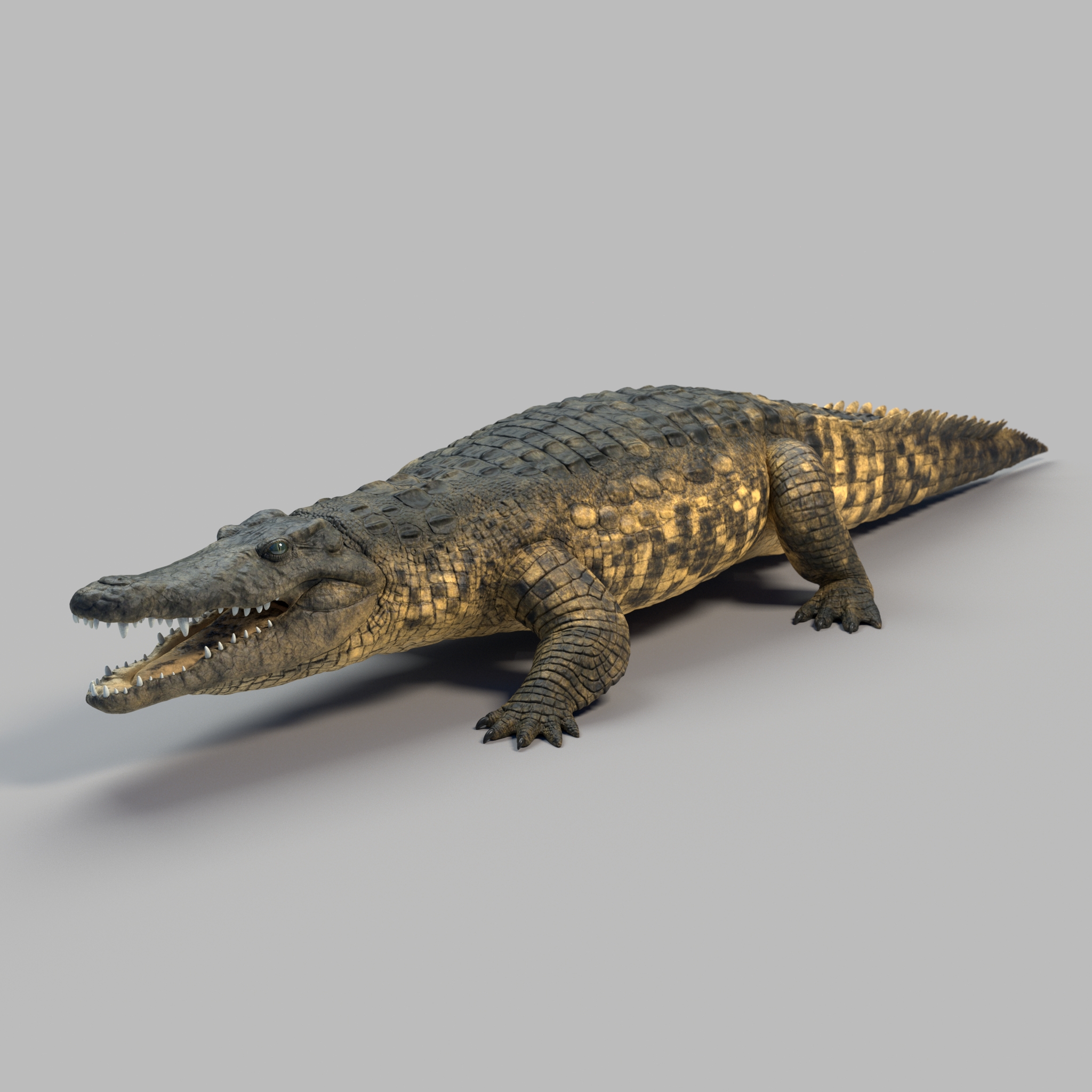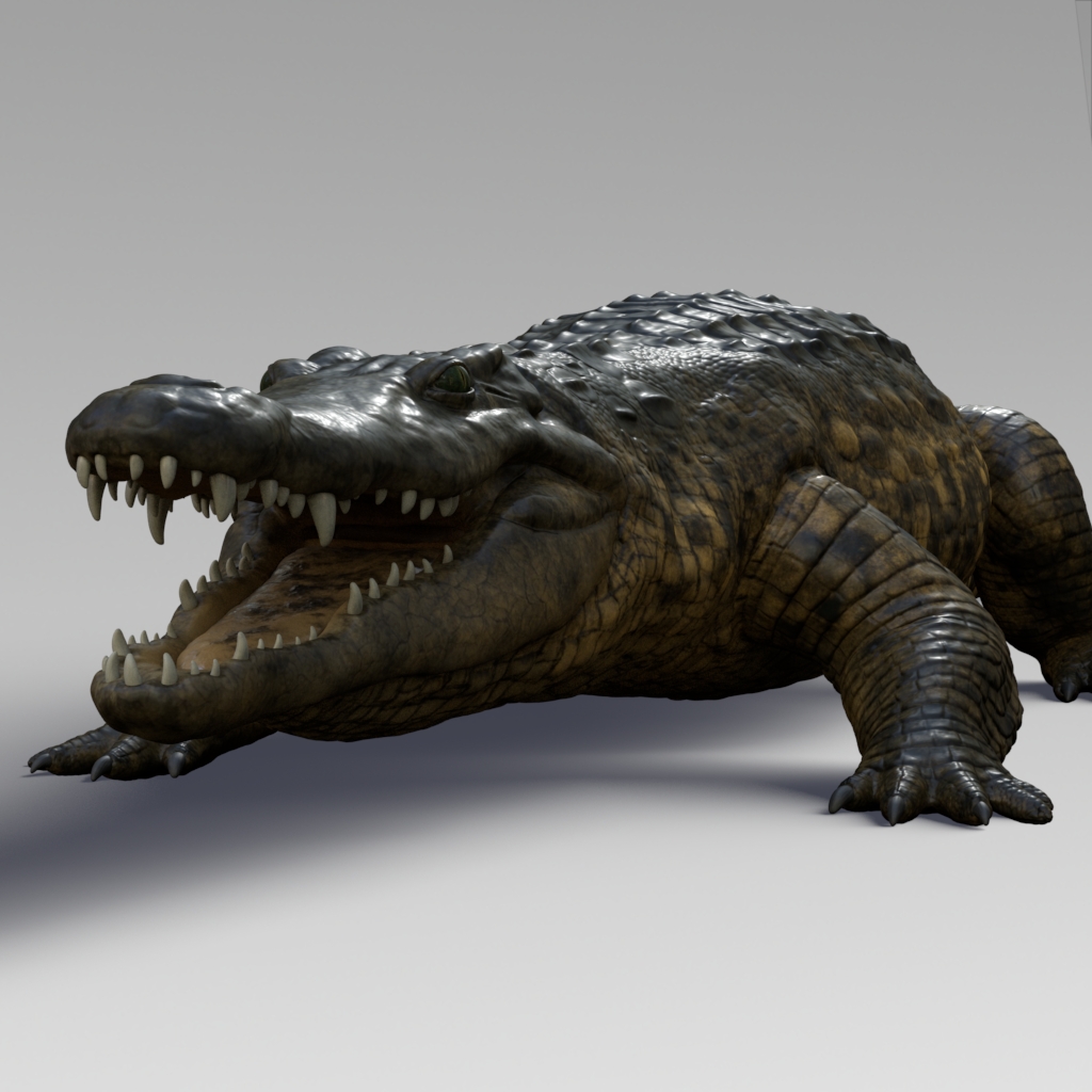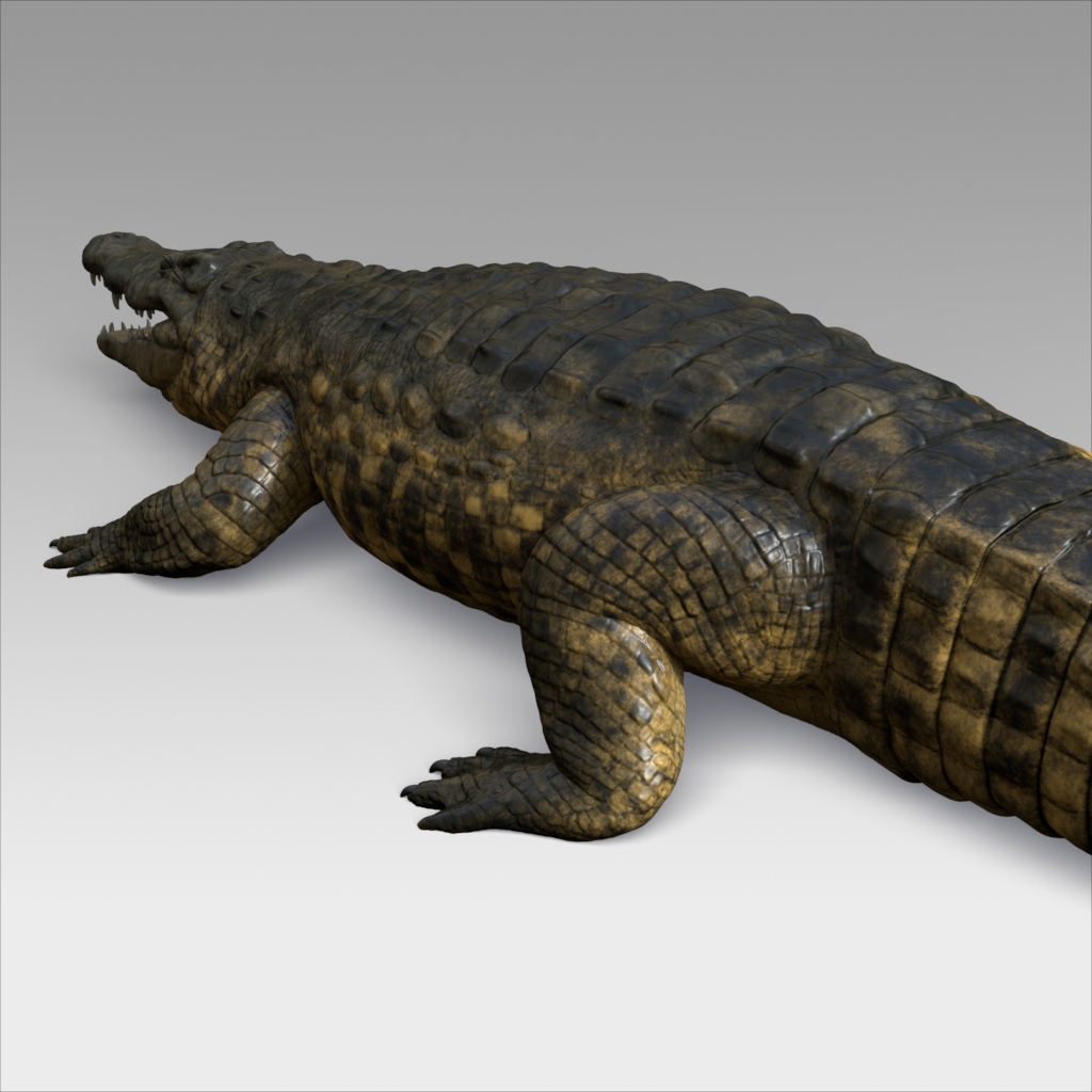 Nile crocodile rigged model with UVs, textures and displacement.